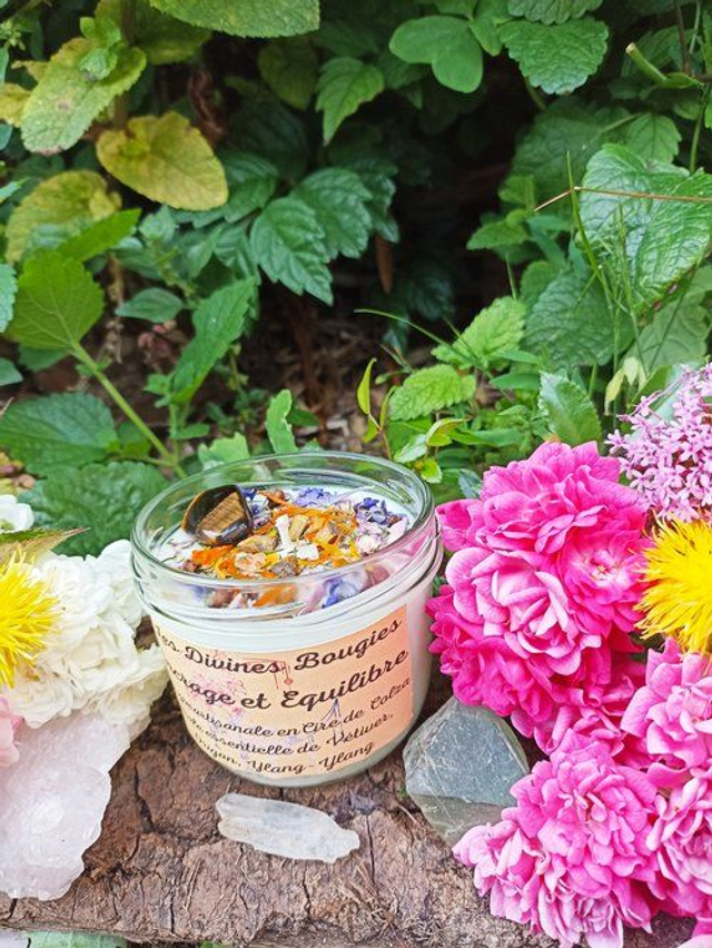 Ingrédients : huile essentielle de Vétiver, Origan, Ylang-Ylang, cire de colza La bougie parfumée aux huiles essentielles Ancrage et équilibre nous reconnecte à la terre notre mère nourricière et nous amène à nous reconnecter avec sa puissance et sa force en toute sérénité. Elle apporte calme intérieur, sécurité, stabilité, confiance Elle aide à calmer le stress, l’anxiété, à libérer les tensions et à lâcher-prise Elle aide à se concentrer, se recentrer sur l’essentiel et à être pleinement présent à ce qui est. Elle apporte un équilibre émotionnel et va stimuler notre intuition et notre créativité Délai de fabrication entre 1 et 4 jours