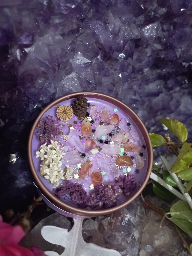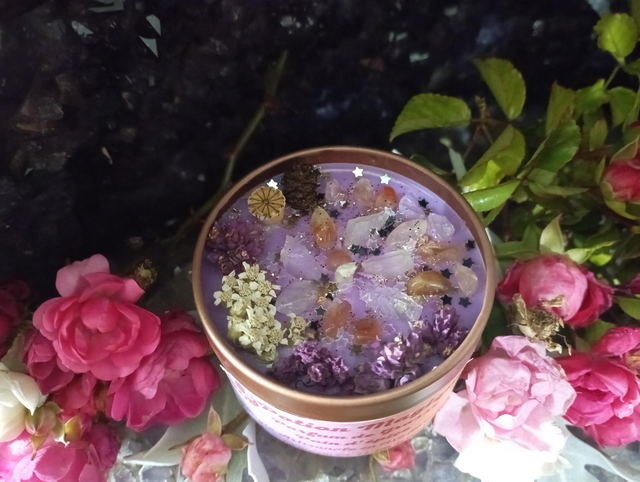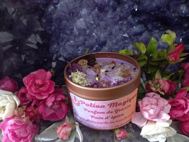 Bougie parfumée réalisée en cire de colza au parfum de Grasse Pain d'épice, garantie sans CMR ni phtalates .cette cire est 100 % biodégradable, végétale et naturelle, garantie sans OGM.J' ajoute un colorant mauve 100% naturel et écologique, fabriqué à base de polymère de végétaux Contient 80 grammes de cire pour environ 20 heures de combustion la mêche est en coton et cirée à la main Pyramide olfactive : Notes olfactives : gourmand, épicé Notes de tête : orange, caramel, cumin Notes de coeur : vanille, girofle, miel Notes de fond : cannelle, patchouli, fêve tonka Cristaux Fleurs séchées issues de mon jardin ou de cueillette Les décors de fleurs peuvent varier en fonction des saisons et de mon stock, la couleur peut sensiblement varier. La bougie est accompagnée d’une notice avec des précautions d’emploi et d’utilisation, il est important de s’y référer afin d'en profiter pleinement Délai de fabrication entre 1 et 4 jours Taille du pot: hauteur avec couvercle: 4,8 cm, diamètre: 6 cm