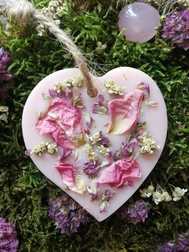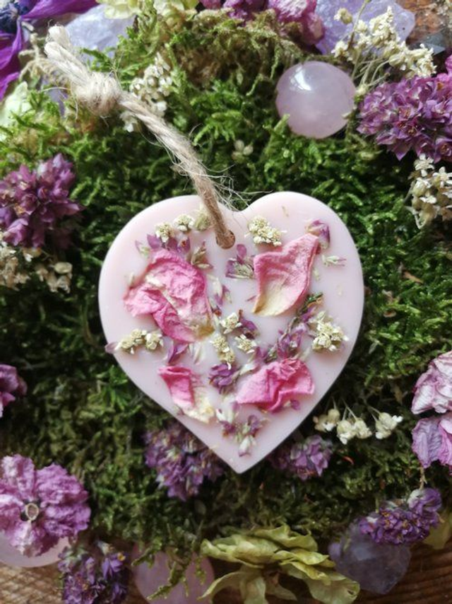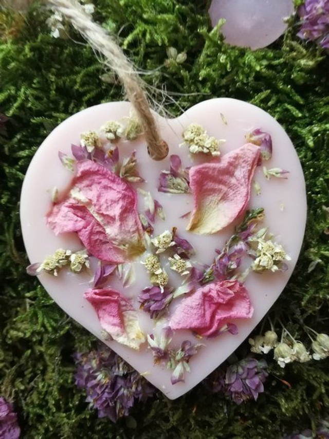 Suspension parfumée au parfum de Grasse à la Rose Ancienne, à suspendre où à déposer dans vos armoires, tiroirs, penderie, petits espaces, dans votre linge… Elle sont décorées avec des fleurs issues de cueillette sauvage ou de mon jardin et sont réalisées a base de cire de colza 100% végétale, biodégradable.J’ y ajoute un macérat de millepertuis réalisé par mes soins.Elles diffuseront leur parfum durant environ 2 à 3 mois et lorsqu’elles auront fini d’émaner leurs senteurs, vous pourrez les réutiliser en les coupant et en les déposant dans un brûle parfum.